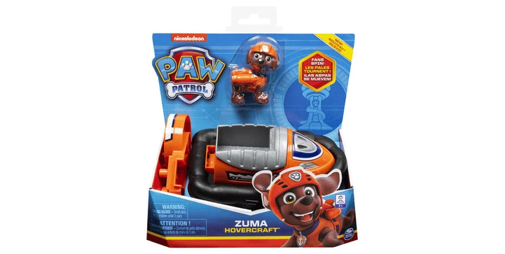 Der mutige Labradorwelpe Zuma aus der TV-Serie Paw Patrol ist mit seinem Luftkissenboot stets zur Stelle, wenn Einsatz im Wasser gefragt ist. Mit freidrehenden Rädern und sich drehenden Rotoren ausgestattet, bringt dieses Wasserfahrzeug Action ins Spiel.