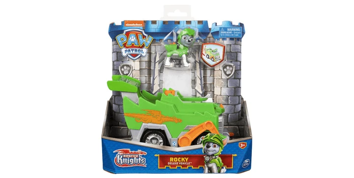 Mit dem ritterlichen Basis Fahrzeug von Rocky inklusive Welpen-Spielfigur können kleine PAW Patrol Fans ab 3 Jahren die neuen Rescue Knights Abenteuer aus der Animationsserie authentisch nachspielen. Die Geschichten lassen jedes Ritter-Herz höher schlagen: Schauplatz der mittelalterlichen Missionen ist eine Burg, die Fellnasen schlüpfen in authentische Ritter-Rüstungen und ein Drache treibt sein Unwesen.