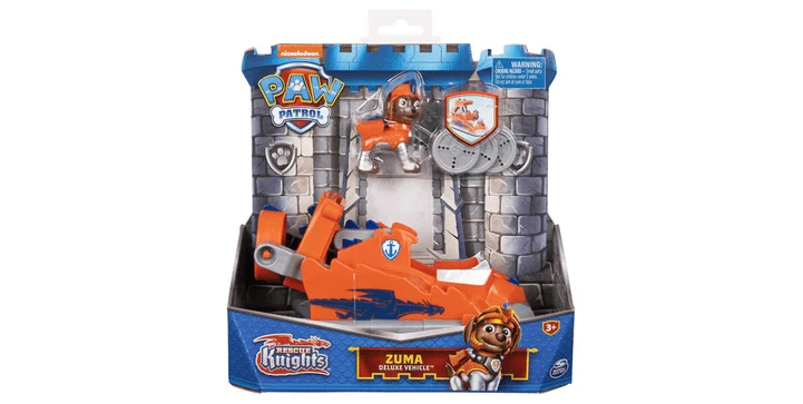 Mit dem ritterlichen Basis Fahrzeug von Zuma inklusive Welpen-Spielfigur können kleine PAW Patrol Fans ab 3 Jahren die neuen Rescue Knights Abenteuer aus der Animationsserie authentisch nachspielen. Die Geschichten lassen jedes Ritter-Herz höher schlagen: Schauplatz der mittelalterlichen Missionen ist eine Burg, die Fellnasen schlüpfen in authentische Ritter-Rüstungen und ein Drache treibt sein Unwesen.