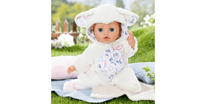 Die Kleinen werden es lieben, ihre 43 cm großen Baby Annabell Puppen in diesen niedlichen Schafs-Strampler zu stecken, damit sie den ganzen Tag kuscheln können! Puppenspielzubehör regt die Fantasie von Kleinkindern an und bietet neue Möglichkeiten und Anreize für ein förderliches Spiel. Puppe nicht enthalten.