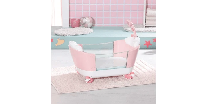 „Juhu, Badezeit!“ Baby Annabell macht es sich in der zauberhaften Wanne bequem und kann nun ganz ohne Wasser baden.