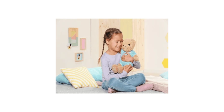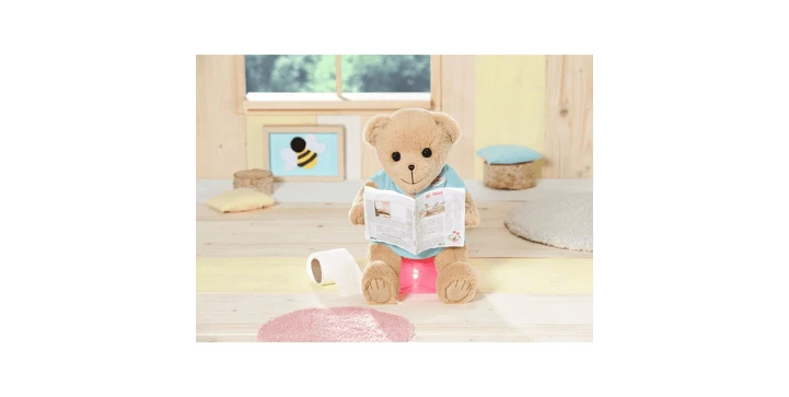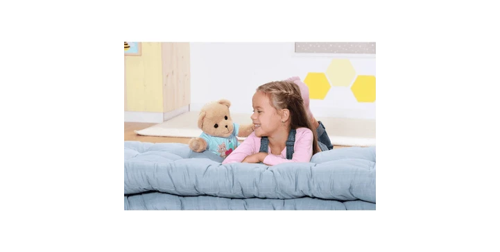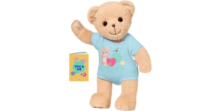 Der bewegliche Kuschelkumpel ist ein superweicher und flauschiger Alltagsbegleiter und ist bereit für alle Abenteuer. Der BABY born Bär hat außerdem seine eigene Kleiderkollektion und kann auch (fast) alles von BABY born anziehen und alle Zubehörartikel von seiner Puppenfreundin mitnutzen. Nur die Schuhe, die passen ihm nicht. Aber welcher Bär braucht schon Schuhe? Die Arme, Beine und der Kopf des Plüschfreunds sind drehbar, so dass er einfach an- und ausgezogen werden kann. Ausgestattet ist das niedliche Bärchen mit einem fröhlichen Strampler, einem tollen Freundschaftsbuch und einem Stickerbogen. Der Bär ist per Handwäsche waschbar und umweltfreundlich verpackt.