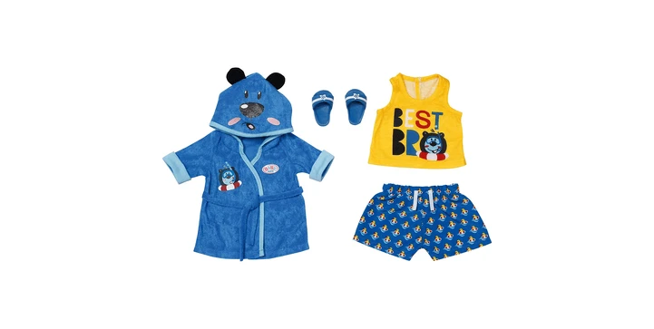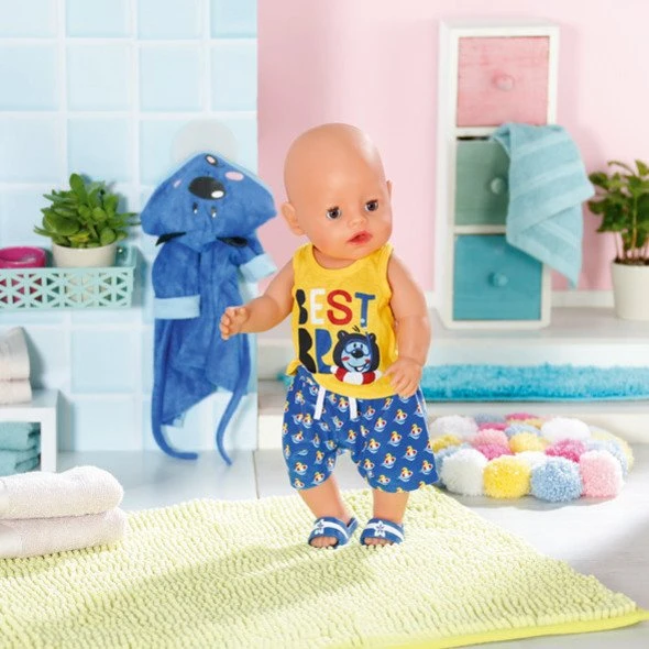 BABY born Bath Deluxe Bademantel 43cm Aus Bademantel, Shirt, Shorts und Schuhen.