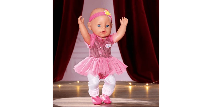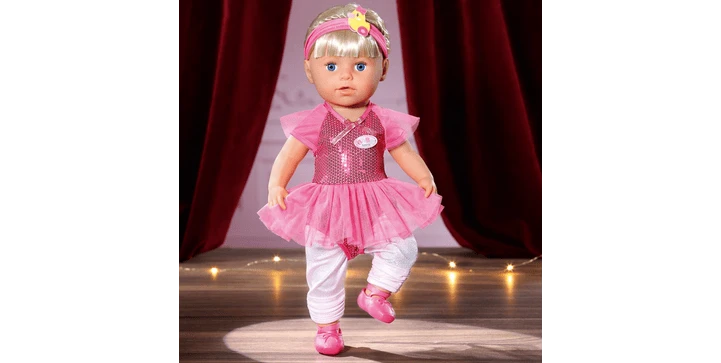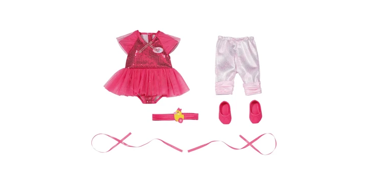 Die Kleinen werden es lieben, sich zu verkleiden und BABY born für Tanzshows, Modenschauen oder sogar Partys bereit zu machen! Mit dem glitzernden rosa Body mit Ärmeln und dem Tutu-Rock wird BABY born der Star der Show sein. Glitzernde Leggings, ein rosafarbenes Stirnband und zierliche Ballerina-Schuhe vervollständigen den Look – alles für die kleinsten Hände zum Üben des Anziehens ihrer Lieblingspuppe.