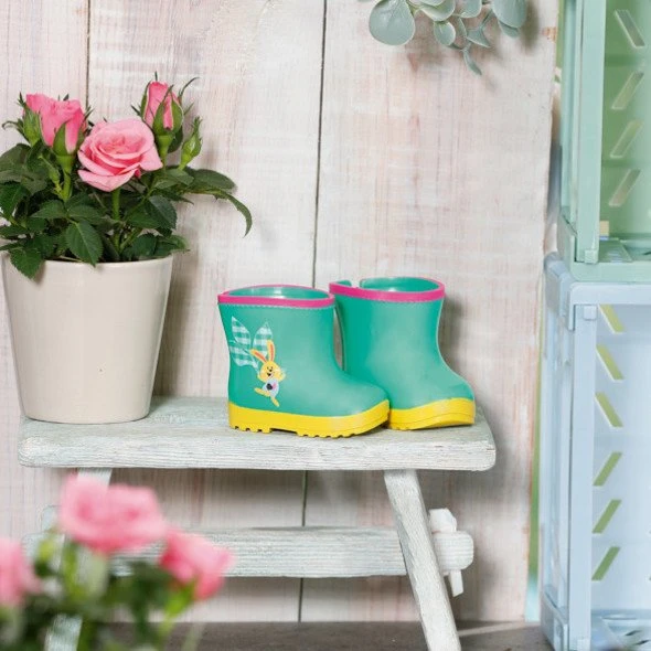 Der Outdoor-Overall für kleine Gärtner mit Gummistiefeln und Enten-Gießkanne.
