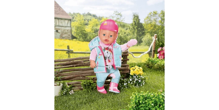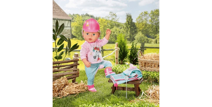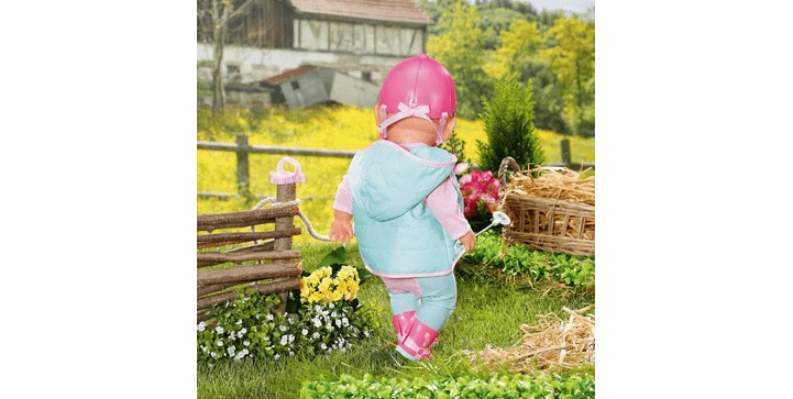 BABY born Deluxe Reitoutfit 43cm aus Weste, Shirt, Hose und Stiefeln. Inkl. Helm, Gerte und Striegel.