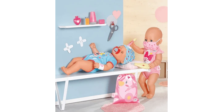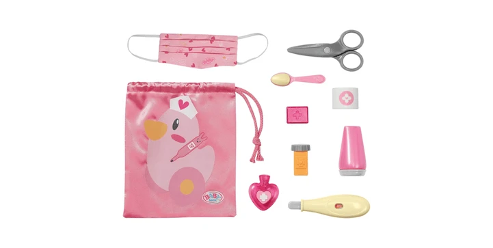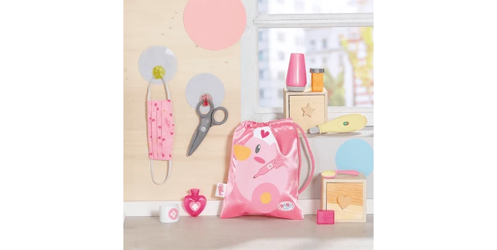 Mit neun Erste-Hilfe-Zubehörteilen wird die Fantasie den ganzen Tag lang beflügelt. Braucht BABY born ein Pflaster? Wie wäre es mit einem Fiebermesser oder einer speziellen Medizin, damit sich BABY born besser fühlt? Es gibt sogar einige Mini-Pillenboxen und eine Schere, um das spannende Rollenspiel zu unterstützen! Und wenn der Tag vorbei ist, können die Kleinen ihr medizinisches Zubehör in den Kordelzugbeutel stecken, damit sie morgen wieder spielen können.