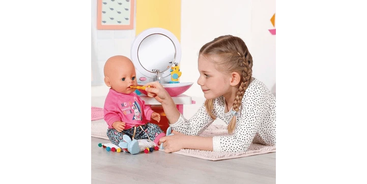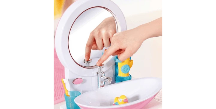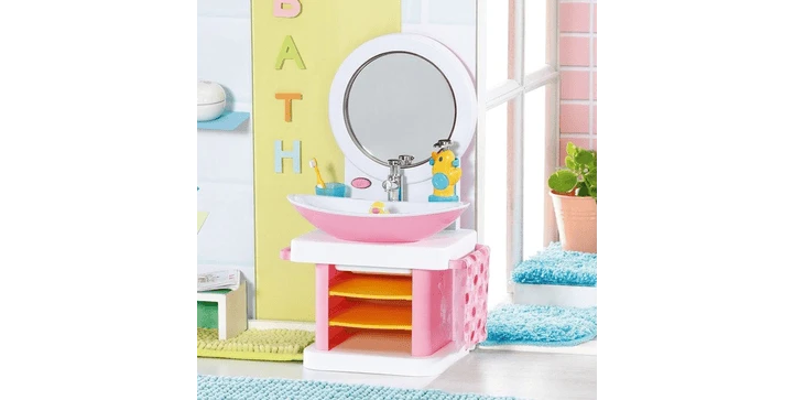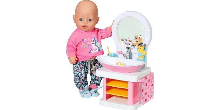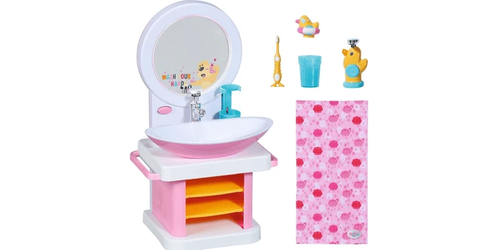 BABY born Bath Handwaschbecken mit Licht- und Sound-Effekt. Inklusive Zahnbürste, Zahnputzbecher, Seifenspender, Entenstöpsel und Handtuch.