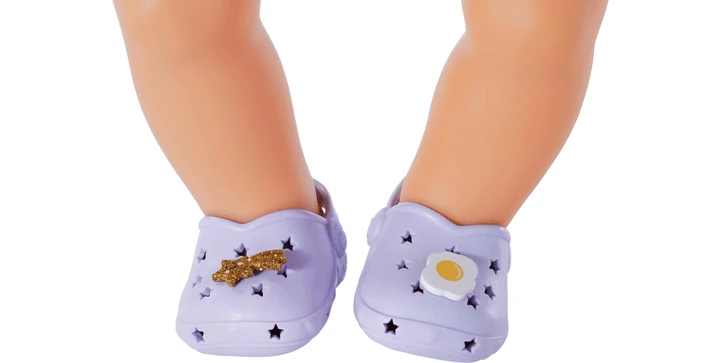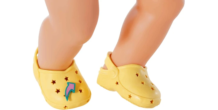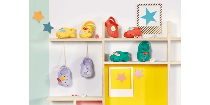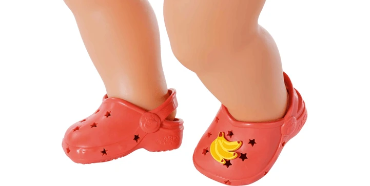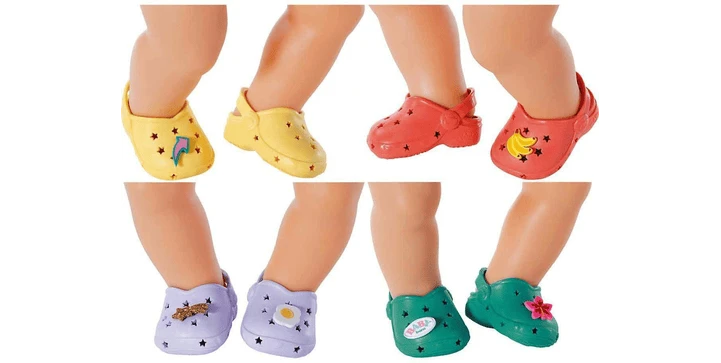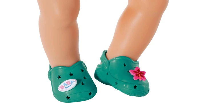 Ferienzeit! Im Urlaub gibt es ganz viel zu Erleben und zu Entdecken. Da braucht man Schuhe, mit denen man auch mal durchs Wasser laufen kann und die ganz schnell ausgezogen sind, wenn man in den Sandkasten hüpfen möchte. BABY borns Schuhe gibt es in vier verschiedenen Farben. Sie sind gelb wie die Sonne, grün wie das Gras, lila wie der Flieder und rot wie Erdbeereis. Mit süßen Pins werden die Clogs je nach Tagesform verziert.