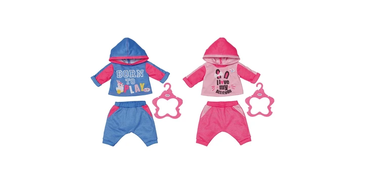 BABY born Jogginganzug 43cm in zwei Designs. Inkl. Kleiderbügeln.
