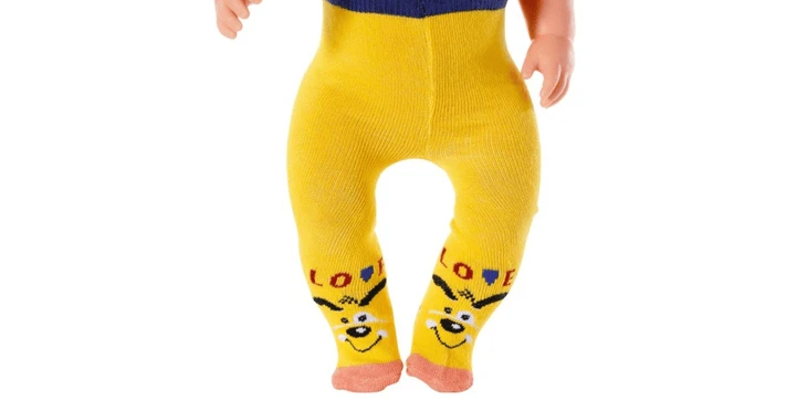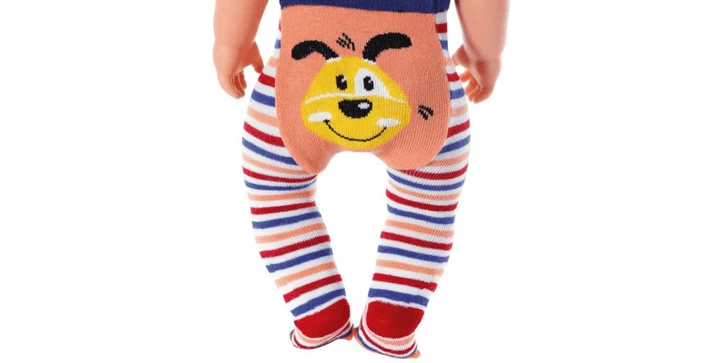 BABY borns Strumpfhosen sind so bequem, damit kann man hüpfen wie ein Hase und rennen wie ein Hund. Ach, deshalb sind Hasendame Bine und Hund Bello auf den gestrickten Beinkleidern zu finden.