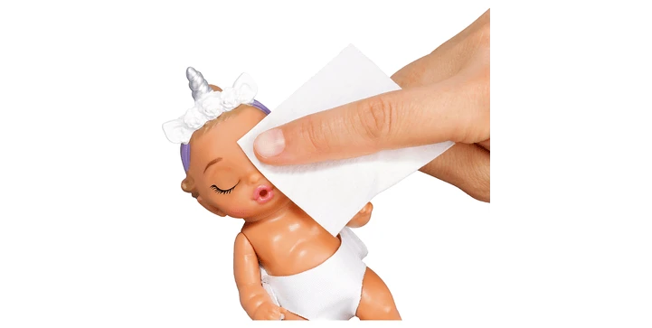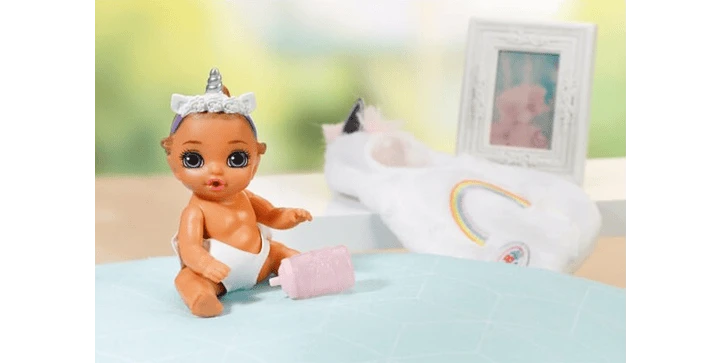 Das kleine BABY BORN® Püppchen freut sich schon darauf, ausgiebig mit dir zu spielen! Jedoch versteckt es sich noch in dem bequemen Bündel, aus dem es ausgepackt werden muss. Dabei entdeckst du nach und nach immer mehr von der Puppe, schließlich ist es noch eine Überraschung, welche Variante in dem lustigen Ei schlummert! Um die Augenfarbe zu erkennen, muss mit einem feuchten Lappen über die Augenlider gewischt werden. Nach so viel Aufregung haben die Überraschungs-Babys natürlich großen Durst und wollen Wasser aus ihrem mitgebrachten Fläschchen trinken. Sobald sie in die Windel machen, verfärbt sich diese zu einem tollen Muster!