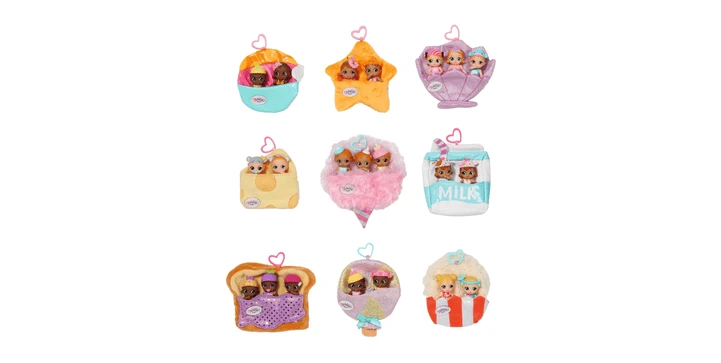 BABY born Surprise Mini Babies Stand. Zwei oder drei Babys im einem Kokon mit einem Bett, Geburtszertifikat und Übersicht über die Babys. 9 verschiedene Überraschungspacks.
