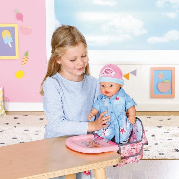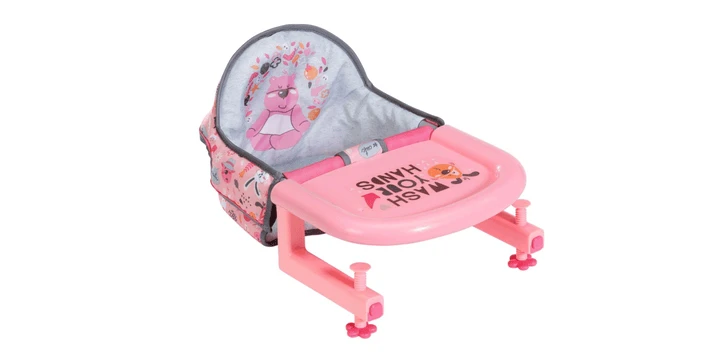 BABY born hat immer einen Bärenhunger. Sie nimmt das aber genauso gelassen, wie Bär Bruno auf der Rückenlehne des Tischsitzes. In diesem praktischen Teil is(s)t BABY born immer mit am Tisch. Da bekommt sie von jedem ein Löffelchen ab.