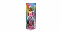 Die Barbie Dreamtopia Einhorn-Puppen laden ein in eine Welt voller Magie! Der bunte Regenbogen-Look dieser Barbie-Puppe umfasst blaues und rosafarbenes Fantasiehaar, ein glitzerndes Oberteil und einen abnehmbaren Rock mit Stern- und Wolken-Aufdruck. Mit dem Schweif zum Anklipsen und dem glitzernden Einhorn-Haarband mit entzückenden Ohren können Kinder die Barbie-Puppe im Handumdrehen in ein schönes Fantasiewesen verwandeln. Die bunten Schuhe und aufgemalten Strumpfhosen sorgen für noch mehr Spielspaß. Mit ihren auffälligen Looks und der fantastischen Verwandlung schaffen die Barbie Dreamtopia Einhorn-Puppen unendlichen Spielspaß für Kinder ab 3 Jahren. Alle Artikel separat erhältlich. Die Puppe kann nicht von allein stehen. Abweichungen in Farbe und Gestaltung vorbehalten.
