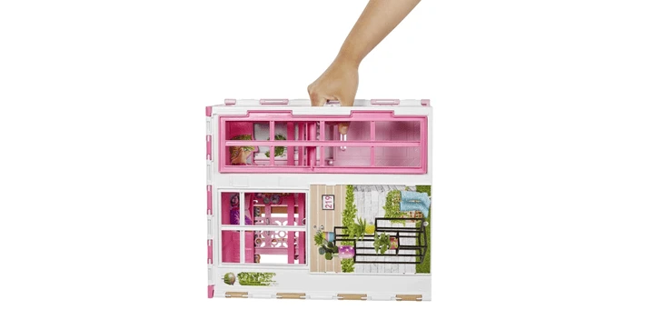 - Zu den Spielbereichen gehören ein Bett, ein Badezimmer, eine Küche und ein Essbereich, alle im farbenfrohen Barbie-Style!