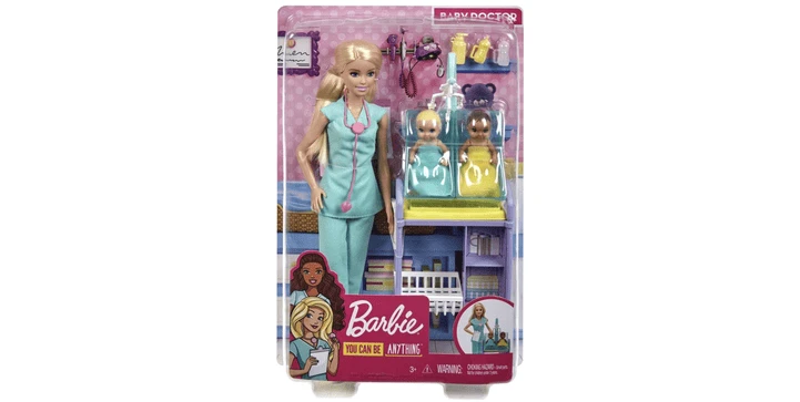 - Mit ihrer hellgrünen OP-Kleidung und einem Stethoskop um den Hals ist die Barbie Kinderärztin-Puppe bereit für die Behandlung ihrer Baby-Puppenpatienten. Barbie vermerkt auf der Patientenakte, dass es den Babys ausgezeichnet geht!