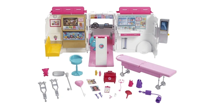 - Auf Notrufe reagieren UND die Patienten versorgen: Das Barbie 2-in-1 Krankenwagen Spielset ist sowohl Klinik als auch Krankenwagen und umfasst mehr als 20 Zubehörteile.