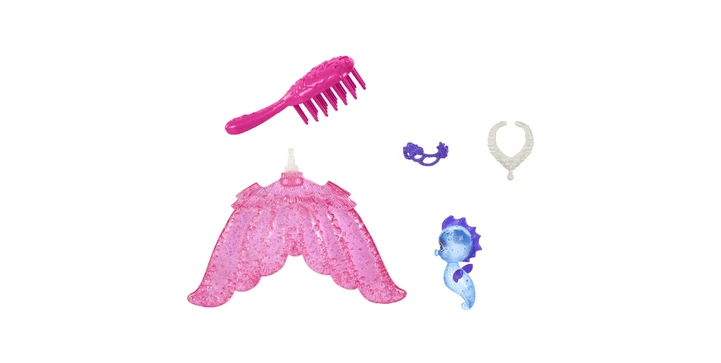 - Mit austauschbaren Schwanzflossen, 2 mit Edelsteinen versehenen Diademen, 2 Halsketten und einer Haarbürste können Kinder der Barbie-Puppe für jedes Abenteuer einen neuen Look verleihen.