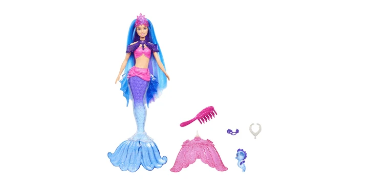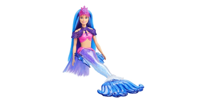 - Der zauberhafte Meerjungfrauen-Look der Barbie-Puppe umfasst extra langes, blaues Haar und eine wunderschöne Schwanzflosse mit Farbverlauf, tollen Details und modellierten Schuppen.