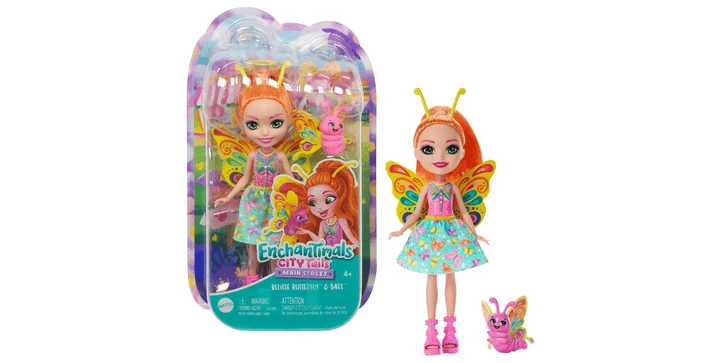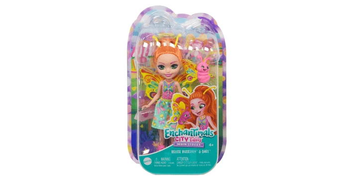 Das Puppensortiment der Enchantimals besteht aus liebenswerten Charakteren, die mit ihren besten Tierfreunden auf ganz besondere Weise verbunden sind. Die Puppe Belisse Butterfly und ihr kleiner Freund Dart leben auf der Hauptstraße in City Tails. Sie sind nicht nur unzertrennlich, sie sehen sich sogar ähnlich! Belisse Butterfly hat leuchtend bunte Flügel und ein niedliches Outfit aus Oberteil und Rock. Dart flitzt auf der Suche nach neuen Abenteuern vorbei! Die besondere Verbindung und die Freundschaft der Enchantimals lässt Kinderherzen höher schlagen und erweckt die Lust zum Sammeln. Abweichungen in Farbe und Gestaltung vorbehalten.