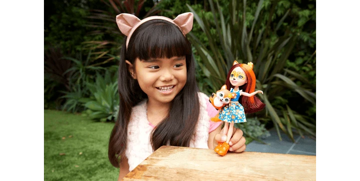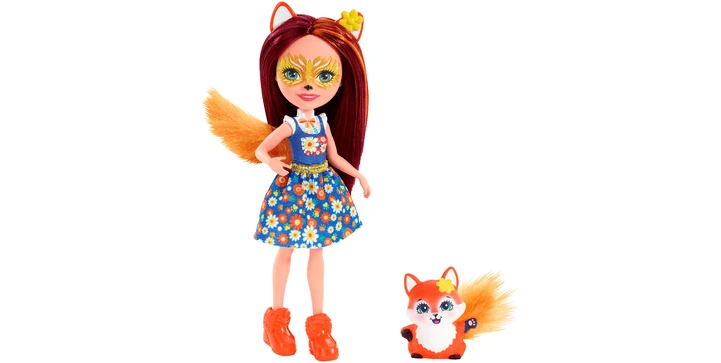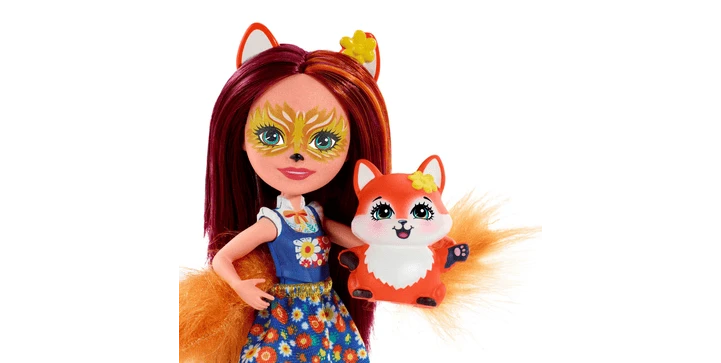 Die hinreißenden Enchantimals und ihre besten Tierfreunde sind einfach bezaubernd. Das Fuchsmädchen Felicity ist auf ganz besondere Weise mit Flick verbunden – sie sind immer zusammen und sehen sich sogar ähnlich! Die 15 cm große Felicity Fox-Puppe ist eine geborene Entdeckerin und trägt ein blaues Outfit mit Blumenmuster und leuchtend orangefarbenen Schuhen. Kinder werden ihre langen Haare und die bezaubernden Details lieben, die genau zu ihrer Tierfreundin passen – wie der buschige Schwanz und die Fuchs-Ohren. Ihre Füchsin Flick ist auch mit bezaubernden Details wie einem buschigen Schwanz und kleinen pinkfarbenen Pfoten ausgestattet. Die besondere Verbindung der beiden besten Freunde lässt Kinderherzen höher schlagen und beim Ausdenken von eigenen Enchantimals-Abenteuern sind der Fantasie keine Grenzen gesetzt! Viel Spaß mit allen Puppen aus der Welt der Enchantimals (alle Artikel separat erhältlich). Enthält eine Puppe mit Kleidern und Accessoires sowie eine Tierfigur. Abweichungen in Farbe und Gestaltung vorbehalten.