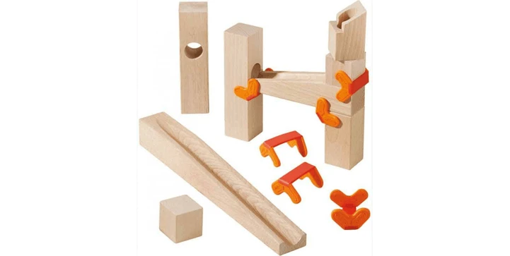 HABA Kugelbahn – Bausteinklemmen. Diese Klemmen passen auf jede HABA-Kugelbahn und stärken Ihre Bogenarbeit!