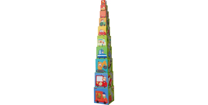 - Inhalt: 10 unterschiedlich große Würfel zum Stapeln.