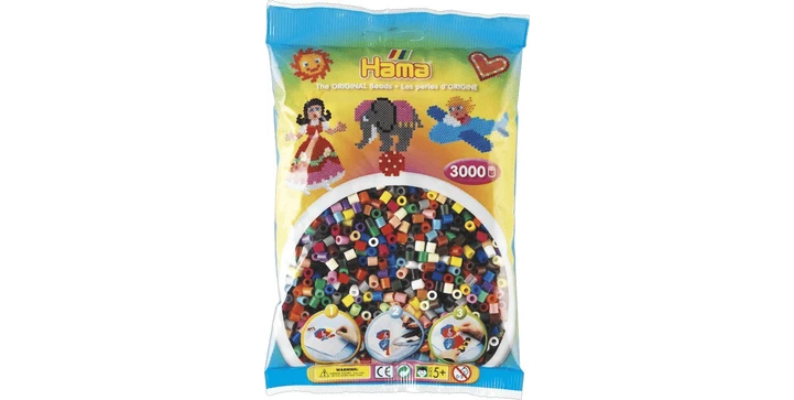 Bügelperlen sind ein ideales kreatives Spielzeug für Kinder ab 5 Jahren. Das Spielen mit den Perlen fördert Kreativität, Farbempfinden und Koordination von Augen und Hand. Zusätzlich zu den einfarbigen Hama – Perlen gibt es auch gestreifte, zweifarbige Perlen. Damit lassen sich Details in den Motiven noch schöner gestalten.