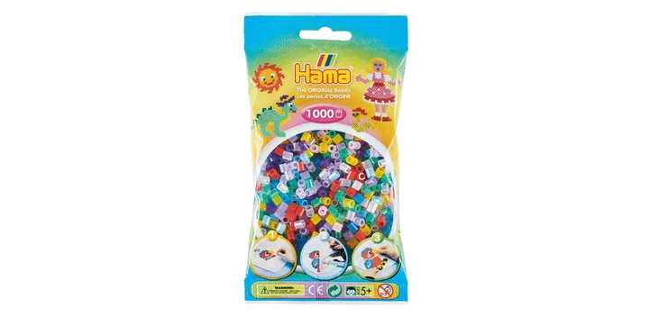 Bügelperlen sind ein ideales kreatives Spielzeug für Kinder ab 5 Jahren. Das Spielen mit den Perlen fördert Kreativität, Farbempfinden und Koordination von Augen und Hand. Zusätzlich zu den einfarbigen Hama – Perlen gibt es auch gestreifte, zweifarbige Perlen. Damit lassen sich Details in den Motiven noch schöner gestalten.
