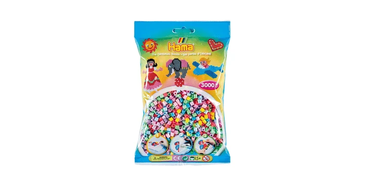 Bügelperlen sind ein ideales kreatives Spielzeug für Kinder ab 5 Jahren. Das Spielen mit den Perlen fördert Kreativität, Farbempfinden und Koordination von Augen und Hand. Zusätzlich zu den einfarbigen Hama – Perlen gibt es auch gestreifte, zweifarbige Perlen. Damit lassen sich Details in den Motiven noch schöner gestalten.