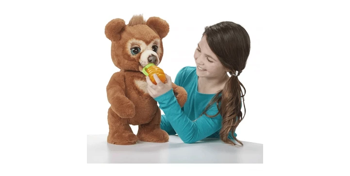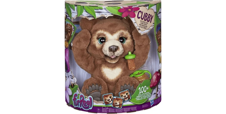 Knuddelbär Cubby von FurReal ist ein süßes, interaktives Plüschtier und ein traumhafter Begleiter für Kinder ab 4 Jahren. Er möchte immer mit dabei sein und mit seinem neuen Freund tagsüber die tollsten Abenteuer erleben. Am Ende eines aufregenden Spieltags ist Cubby ein liebenswerter Knuddelbär für die Nacht und freut sich darauf, neben seinem Besitzer einzuschlafen. Cubby ist neugierig, aber auch sehr verschmust. Er hebt seine Arme, um hochgehoben zu werden und seinen Freund zu umarmen. Cubby spielt Guck-guck und führt sogar manchmal ein kleines Tänzchen auf.Und wenn es Zeit für einen kleinen Snack ist, kann er mit seinem Fläschchen oder Leckerli gefüttert werden – dann gibt er lustige Essgeräusche von sich.So ein kleines Plappermäulchen! Wenn man mit Cubby spricht, antwortet er mit lustigem Bärengeplapper. Im Nachtmodus schließt der süße Bärenjunge seine Augen, gibt Schlafgeräusche von sich und spielt eine von vier 5-minütigen Musikfolgen mit sanften Tönen ab. Süße Träume, kleiner Cubby!