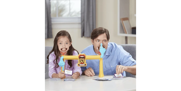 In jeder Runde spielen jeweils ein Spieler aus beiden Teams gleichzeitig. Mit der Maulsperre im Mund legen sie ihr Kinn auf die Kinnablage des Spielgeräts. Dann entscheidet die Hand: Wer sie vor dem Mund hat, sollte möglichst nichts sagen. Ist die Hand aber unten, gilt es, so viele Begriffe wie möglich zu nennen. Dann sind die Mitspieler gefragt. Finden sie heraus, was da Unverständliches gesagt wird?