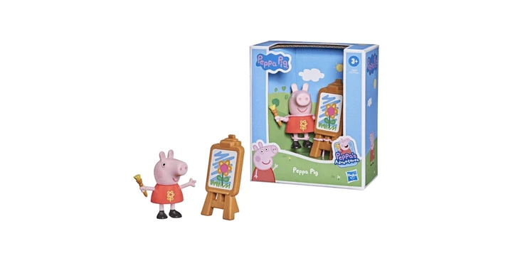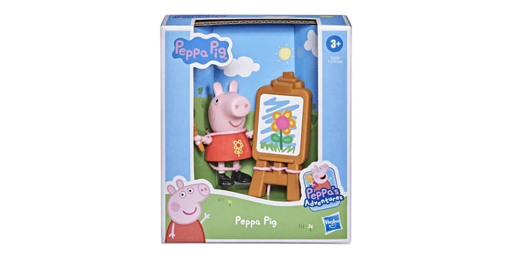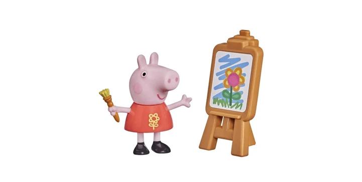 - DIE NIEDLICHE PEPPA FIGUR trägt eine spezielle Version ihres bekannten roten Kleides und hält einen Pinsel in der Hand. Auf einer Staffelei steht ihr neuestes Kunstwerk. Vielleicht will die kecke Kleine ja mal eine Künstlerin werden