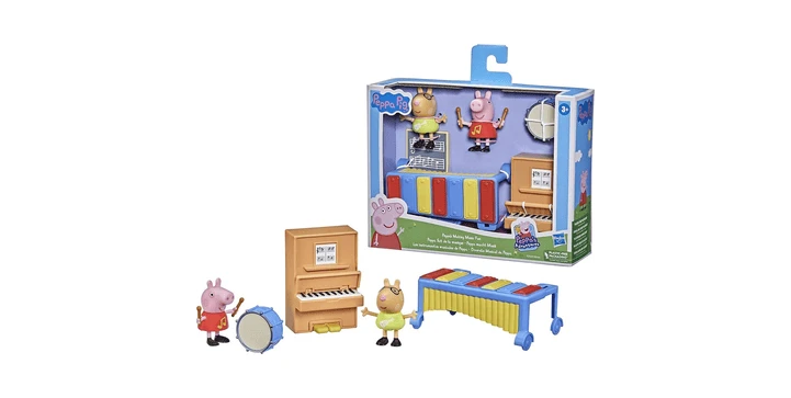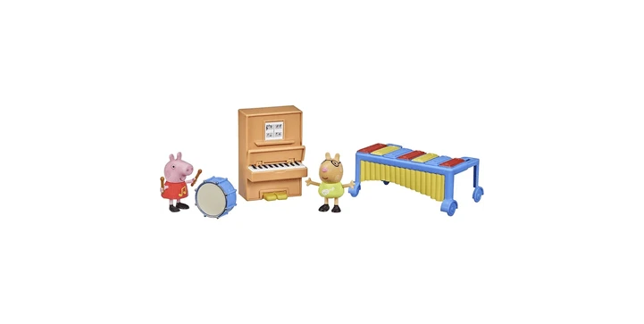 Peppa Wutz und Pedro Pony sind Freunde aus der Spielgruppe und musizieren gern gemeinsam! Kinder können sich mit dem Spielset Peppa macht Musik vorstellen, dass die beiden Freunde zusammen Lieder spielen und dabei viel zu Lachen haben. Das Spielzeug ist von der beliebten Serie Peppa Pig inspiriert und enthält die 7,5 cm großen Figuren von Peppa Wutz und Pedro Pony. Kinder ab 3 Jahren können die Figuren auf die Trommel schlagen, das Klavier und das Xylofon spielen lassen und so Szenen aus ihren Lieblingsfolgen der Serie nachspielen oder sich ihre eigenen musikalischen Geschichten ausdenken