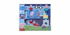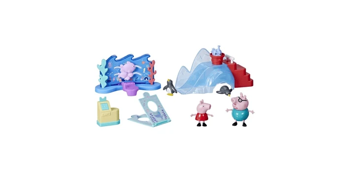 Es ist von einem beliebten Ort in der Serie Peppa Pig inspiriert und enthält bewegliche Figuren von Peppa und Papa Wutz, 2 Pinguinfiguren und 4 thematische Accessoires, wie einen Meereshintergrund mit einem Hotpsot. Wird eine Figur darauf gestellt und nach vorn bewegt, schwimmen auch die Fische mit! Außerdem gibt es eine Eisrutsche mit einem Eimer-Accessoire, das sich plötzlich mit Fischen füllt, wenn der Griff nach unten gedrückt wird, sowie Fotoaufsteller für die Figuren und eine Kasse, die sich auf Knopfdruck öffnet. Ein spannender Besuch im Meeresmuseum mit der allseits beliebten 4-jährigen Peppa kann beginnen!