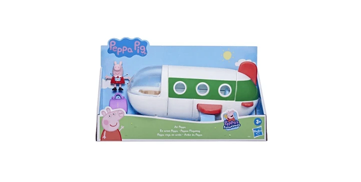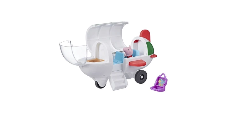 - FLUGZEUG HAT RÄDER, sodass es von den Kinder durch das ganze Haus geschoben werden kann. Das Dach des Flugzeugs, die Treppe und die Heckklappe lassen sich öffnen und bieten so noch mehr Spielspaß. Peppas Koffer passt hinter den letzten Sitz