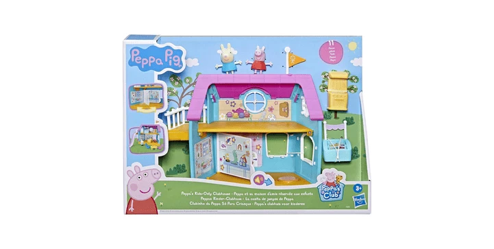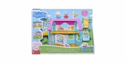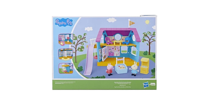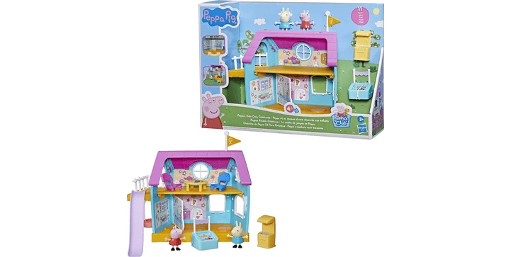 Das Spielset ist von der Serie inspiriert und hat eine bewegliche Wand, wodurch entweder ein Laden- oder ein Bäckerei-Hintergrund entsteht. Wird eine Figur auf den Hotspot gestellt, sind verschiedene Clubhaus-Geräusche und Sätze aus der Serie zu hören (spricht nur Englisch)! Was werden Peppa und ihre Freundin Luisa heute spielen? Es gibt jede Menge tolle Accessoires, mit denen Kinder sich viele spannende Spielgeschichten ausdenken können, wie einen Ofen, der auch eine Kasse ist, 2 Stühle mit Drehtisch und einen Verkaufsstand. Es gibt sogar eine abnehmbare Rutsche sowie eine Reifenschaukel zum Spielen im Freien und eine Fahne für das Dach, die allen zeigt, dass hier nur Kinder erlaubt sind! Das Spielset ist ein fantastisches Geschenk für grenzenlosen und fantasievollen Spielspaß.