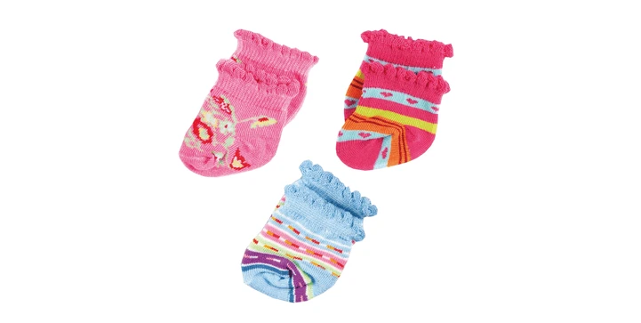 3 Paar Puppensöckchen in tollem Farb- und Mustermix elastisches Material sorgt für kinderleichtes An- und Ausziehen für Puppen der Größe 35-45 cm geeignet