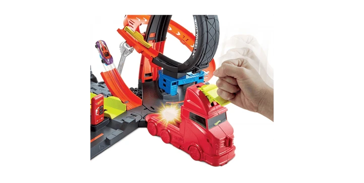 - Das Spielset bietet spannunggeladene Action und verschiedene Spielfunktionen wie bewegliche Schläuche und eine coole Reifenwerkstatt. Die Spurwechsler sorgen für noch mehr Spielspaß.