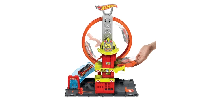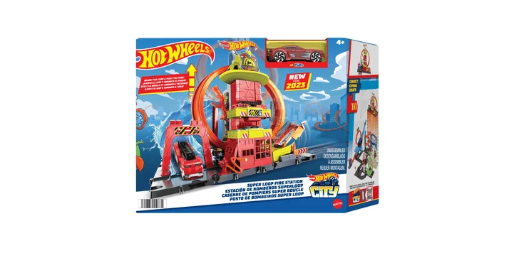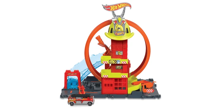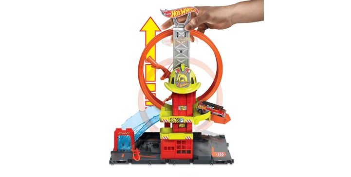 - Stunts und Rennen durch einen anpassbaren Looping helfen dabei, die Hot Wheels City mit dem Super-Looping Feuerwache-Spielset zu retten!