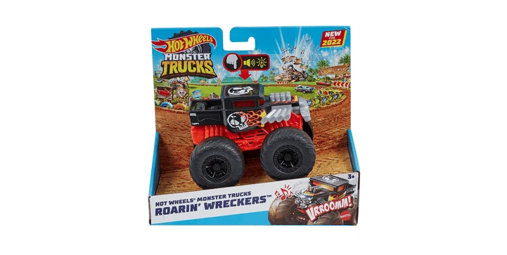 Mit diesem Hot Wheels Monster Trucks Bone Shaker-Truck können Kinder aufregende Crash-Action nachspielen, die durch die Lichter und Geräusche noch besser zum Leben erweckt wird. Dieser Fan-Liebling ist im Maßstab 1:43 gehalten und weist das tolle Design und die riesigen Räder der Hot Wheels Monster Truck-Marke auf. Auf Knopfdruck sind Motoren- und Crash-Geräusche sowie das Bone Shaker-Titellied zu hören – für noch mehr actiongeladenen Spielspaß. Im Inneren des Führerhauses leuchtet auch ein Licht, das von draußen durch die Fenster sichtbar ist. Kinder können alle Trucks sammeln, um spannende Wettkämpfe nachzuspielen, die durch dazu passende Geräuscheffekte noch realistischer wirken (alle Artikel separat erhältlich). Abweichungen in Farbe und Gestaltung vorbehalten.