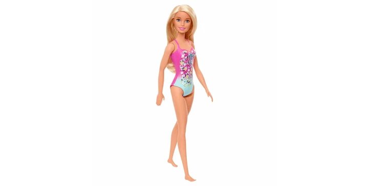 Mit ihrem schick gemusterten, trendy Badeanzug, der genau ihrem Geschmack entspricht, ist diese Puppe bereit für sommerlichen Badespaß.