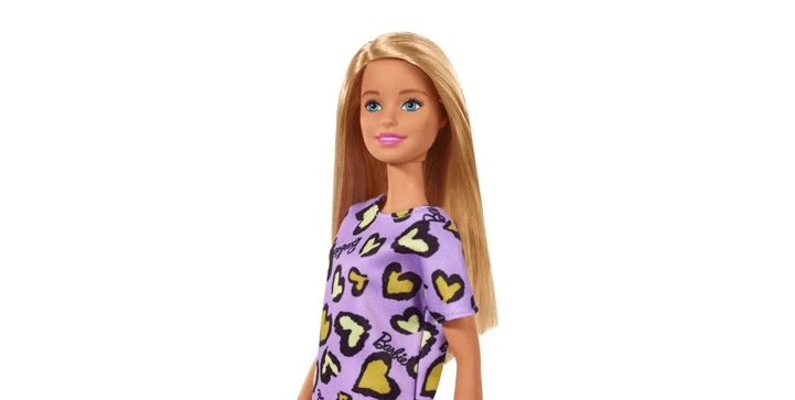 Chic Barbie Puppe im lila Kleid mit Herzprint (blond)