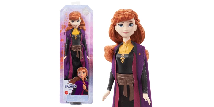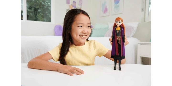Diese Anna-Puppe wurde durch die furchtlose und optimistische Heldin aus dem Disney-Film Die Eiskönigin 2 inspiriert. Diese bewegliche Modepuppe trägt ihren charakteristischen Reiselook mit Accessoires wie Stiefeln und einem weichen Umhang sowie einem Rock. In ihrem bekannten Outfit aus dem Film ist diese Anna-Puppe bereit, auf eine Reise weit weg von zu Hause zu gehen. Die Puppe kann nicht von allein stehen. Abweichungen in Farbe und Gestaltung vorbehalten.