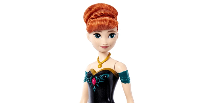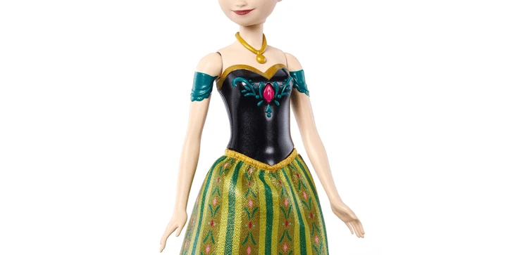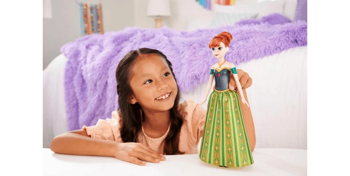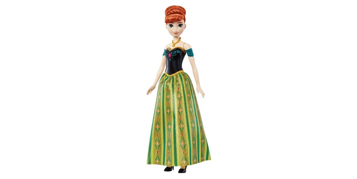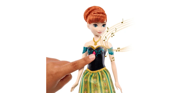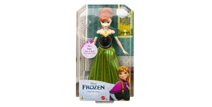 Inspiriert durch die beliebte Figur Anna aus den Disney-Filmen Die Eiskönigin ist diese Puppe bereit, ihren bekannten Song zu singen. Kinder werden begeistert mitsingen, wenn diese Anna-Puppe Zum ersten Mal” singt. Diese Anna-Puppe mit ihrer charakteristischen Kette und ihrem Schlossoutfit singt durch Druck einer Taste ihr Lied. Fans können damit ihre liebsten musikalischen Momente aus dem Film nachstellen oder ihre eigenen Abenteuer erfinden. Die Puppe kann nicht von allein stehen. Abweichungen in Farbe und Gestaltung vorbehalten.