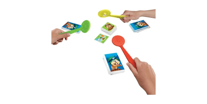 Ziehe eine Karte und finde eine Übereinstimmung. Flott mit der Klatsche die Karte sichern. Der erste, der 5 Karten erhält, hat gewonnen.