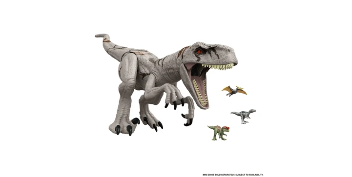 Jetzt geht das spannende Actionabenteuer richtig los mit Jurassic World: Ein neues Zeitalter“! Kinder können mit diesen Riesen-Flitzedino GIGANTISCHEN Spielspaß entdecken. Diese auf einem neuen Dinosaurier aus Jurassic World: Ein neues Zeitalter“ basierende Figur ist fast 1 m lang und 45 cm hoch. Die Figur besticht nicht nur mit ihrer RIESIGEN Größe, sondern kann auch bis zu 20 Mini-Actionfiguren AM STÜCK verschlingen! Kinder können mit der Figur all ihre kleinere Figuren verschlingen und dann die Klappe am Bauch öffnen, um diese wieder freizugeben und in eine neue, verfressene Geschichte einzutauchen. Minifiguren separat erhältlich. Dieser Flitzedino überzeugt mit realistischen Formen, Texturen und Farben. Abweichungen in Farbe und Gestaltung vorbehalten.