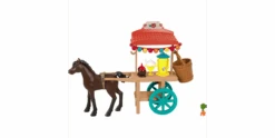 Mit dem Zeichentrickfilm Spirit Untamed von DreamWorks Freundschaft, Mut und Abenteuer erleben! Der süße Festivalstand auf dem Straßenfest von Miradero wartet auf Kunden! Der bunt dekorierte Wagen besitzt rollende Räder und eine Überdachung und wird von einem 12,7 cm großen Pony gezogen. Zum Wagen gehören glasierte Äpfel, ein Slushie- und ein Limonadenbehälter, um die Wünsche der hungrigen Festgäste zu erfüllen! Kinder können Festszenen aus dem Film nachspielen und den Festivalstand leiten.