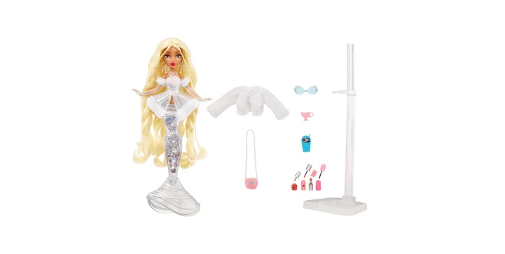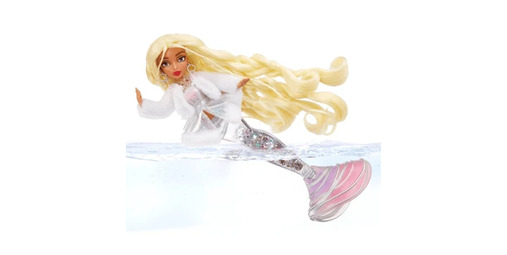 - INKLUSIVE: Artikulierte Meerjungfrauenpuppe mit farblich veränderbarer Flosse, Wintermode, Ohrringen, Halskette, Geldbörse, Tasse, Telefon, Mascara, Lippenstift, Lipgloss und Nagellack sowie 1 Puppenständer.